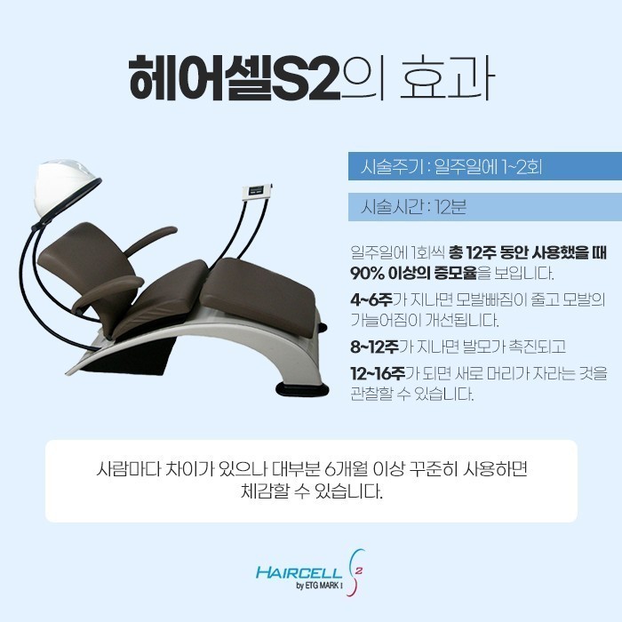때문에 동두천 탈모관리 헤어셀S2가 있는 곳으로 알아보는 분들도 많이 계신데요. 이처럼 적합할 수도 있을 헤어셀S2 주기는 일주일에 1~2회로 받고 12분 정도 소요될 수 있답니다.